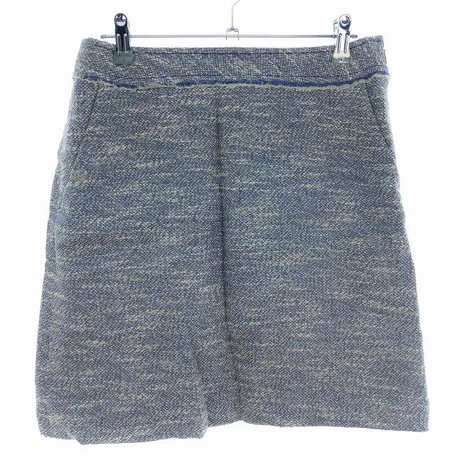 【中古】ボールジー トゥモローランド スカート 台形 ミニ コットン 麻混 サイドファスナー 総柄 38 青 レディース