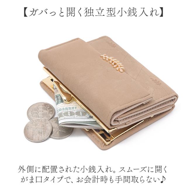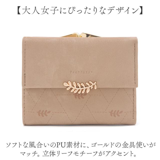 | 商品説明 | 【毎日持ち歩ける万能アイテム】 ・シーンを問わず活躍◎上品な可愛さで、程よい収納力もある「三つ折り財布」。 【大人女子にぴったりなデザイン】 ・ソフトな風合いのPU素材に、ゴールドの金具使いがマッチ。立体リーフモチーフがアクセント。 【スマートに持ち運べて使い勝手抜群】 ・必要な物がすっきりまとまる、三つ折り仕様。小さめのバッグにもすっぽりIN。 【ガバっと開く独立型小銭入れ】 ・外側に配置された小銭入れ。スムーズに開くがま口タイプで、お会計時も手間取らない♪ 【いつでもどこでも開け閉め簡単】 ・開口部はスナップボタン式。いつでもサッと開け閉めでき、飛び出しをガード。 【お札もカード類もしっかり収納】 ・お札入れに、カード類が入る複数のポケット。使い勝手の良いシンプル設計。 【お気に入りを選べるカラー】 ・ベーシックや柔らかな印象のカラーをラインナップ。長く愛用できる控えめなデザイン。 【ポケット仕様】 ・外側:がま口式小銭入れ×1 ・内側:お札入れ×1、カードポケット×4、フリーポケット×2 |