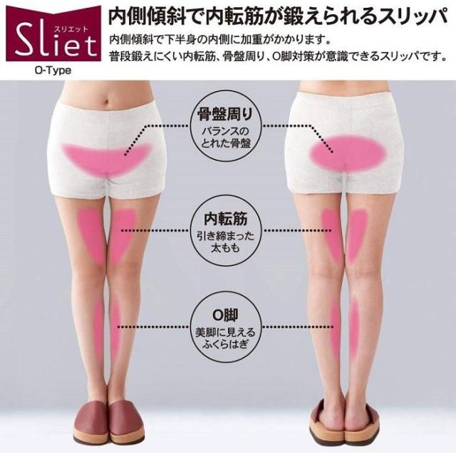 普段鍛えにくい内転筋、骨盤周り、O脚対策が意識できるスリッパです。
