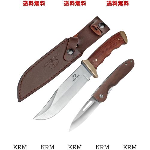 MOSSY OAK ナイフセット シースナイフ&折畳みナイフ アウトドアナイフ フルタング構造 天然ウッドハンドル 木目様ハンドル 全長275mm&166