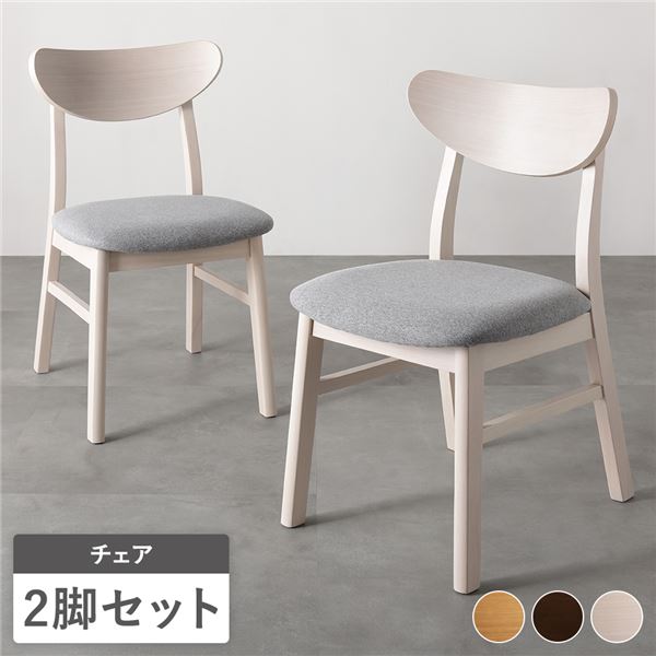 商品仕様: ダイニングチェア 2脚セット 幅47cm ホワイト 白 ファブリック 天然木突板 木脚 傷防止フェルト付き リビング ダイニング 完成品
