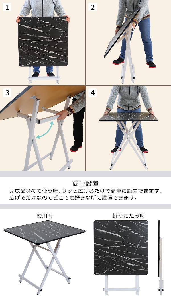 折りたためて省スペースで保管可能!折りたたみ式テーブル