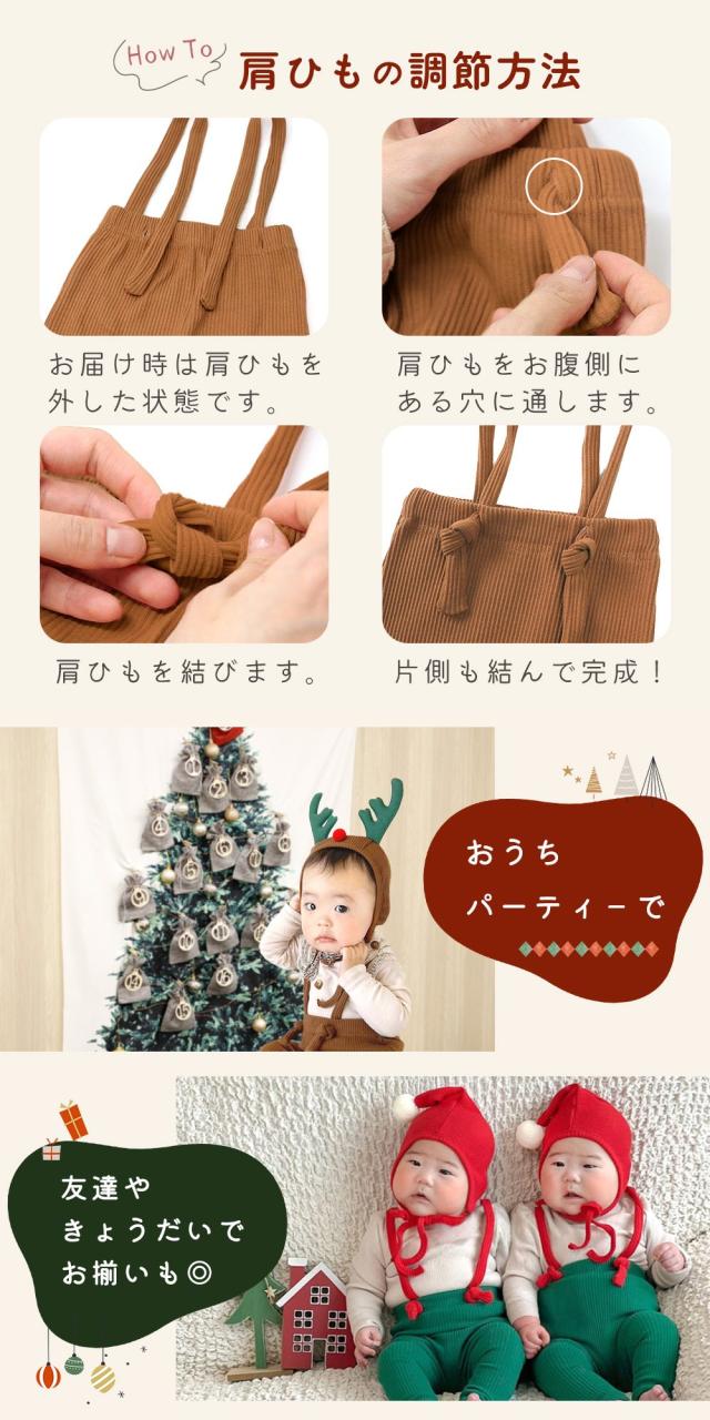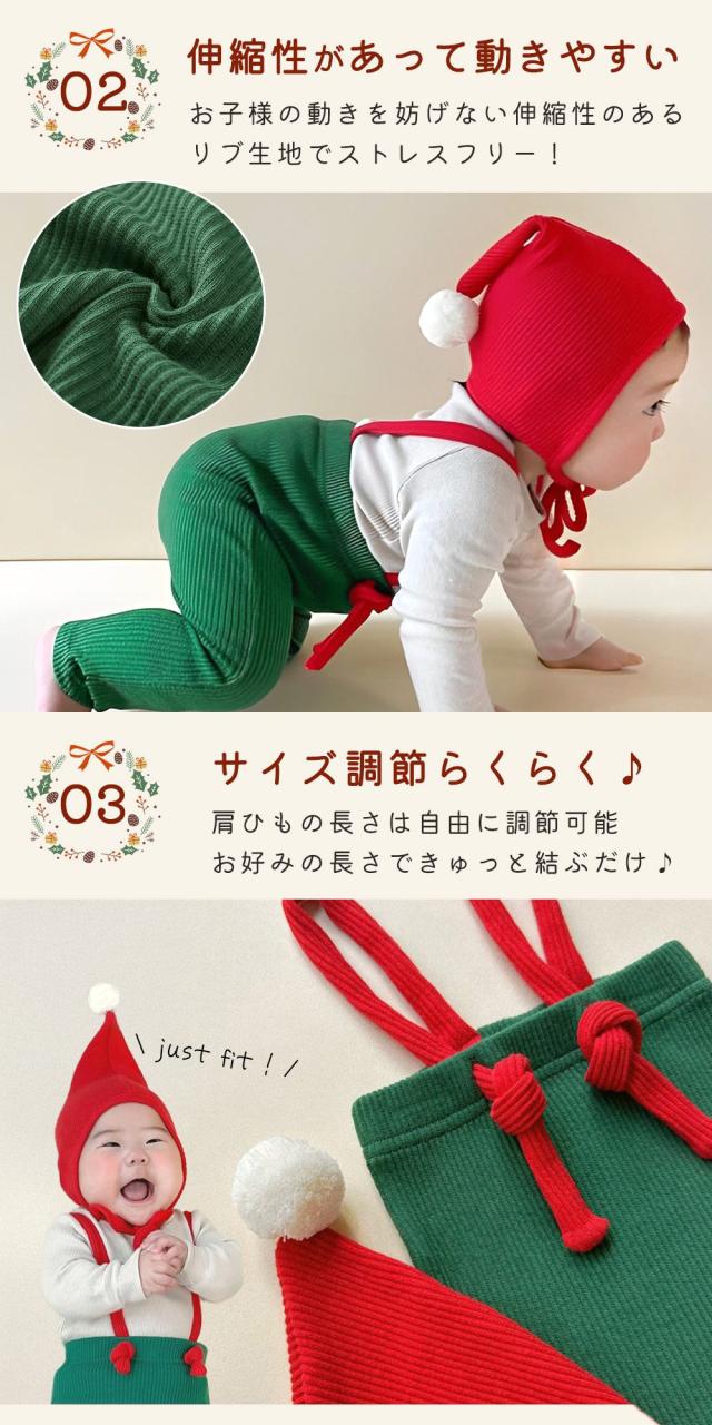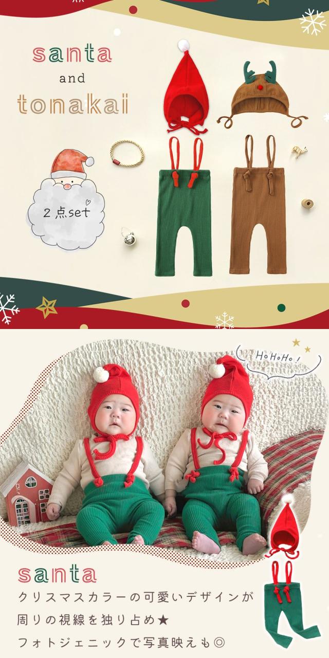 サンタ/トナカイ/ベビー/子供/衣装/帽子/上下/2点セット/コスプレ/クリスマス/なりきりセット/サロペット/オーバーオール/コスチューム/仮装/ファッション/かわいい/おしゃれ/きぐるみ/キッズ/ハロウィン/感謝祭/男の子/女の子/長袖/サンタクロース/サンタコス/家族写真/記念写真/思い出/撮影/SNS映え/パーティー/着ぐるみ/兄弟/兄妹/姉妹/お揃い/0歳/1歳/2歳/ 出産祝い/ギフト/TN-CBCM/