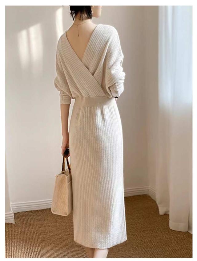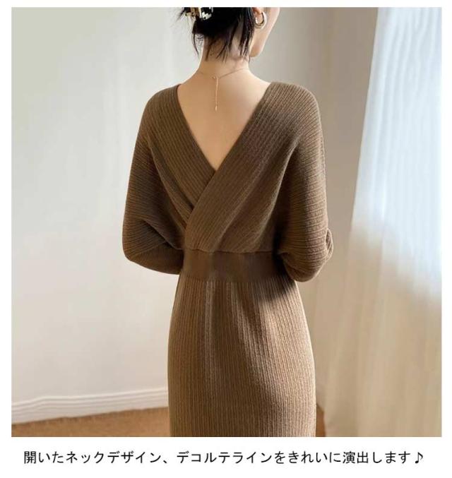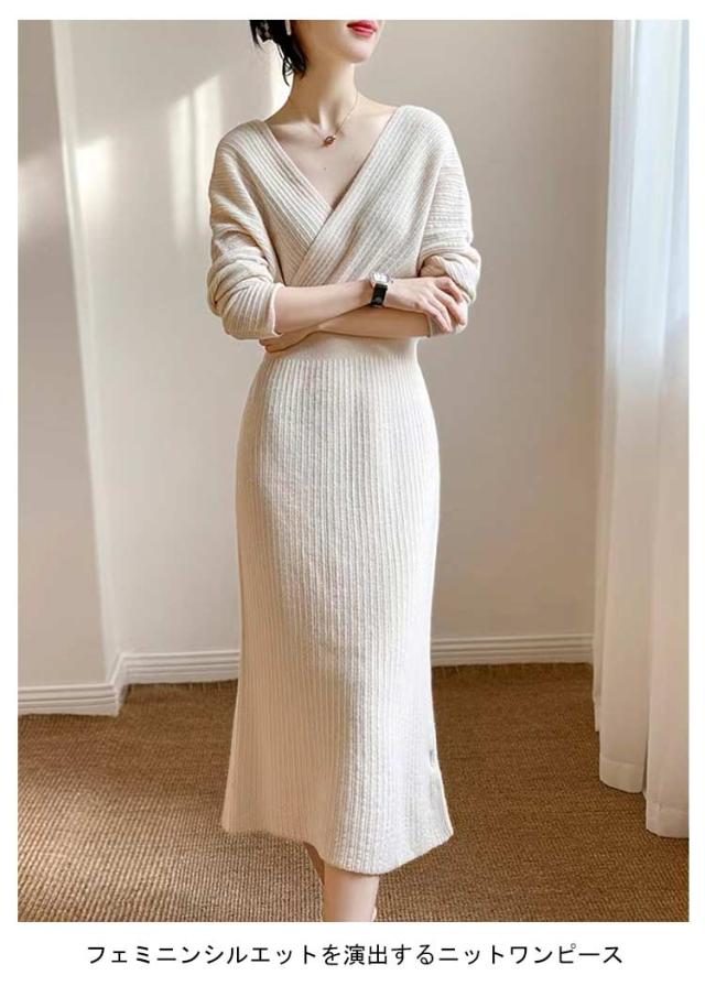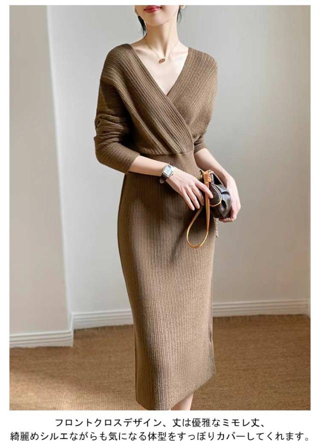 優雅 タイトワンピース 冬 きれいめ 春 ニット 大人女性 ロング丈 Vネック ニットワンピース 秋冬 ニットワンピース ワンピース ロングワンピース パーティドレス 長袖 エレガント フリーサイズ ワンピース 上品 二次会 韓国ファッション セクシー ギフト プレゼント