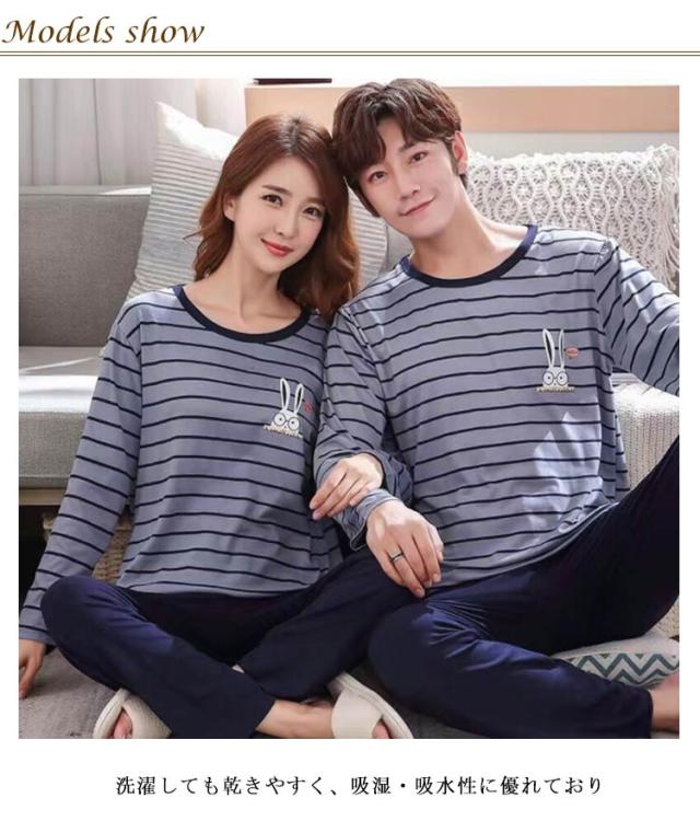 メンズ ルームウェア パジャマ セットアップ 長袖 トップス 送料無料 カップル パジャマ レディース 上下 ルームウェア 部屋着 ロングパンツ セット 上下セット 秋 春 送料無料 カットソー きれいめ 大人