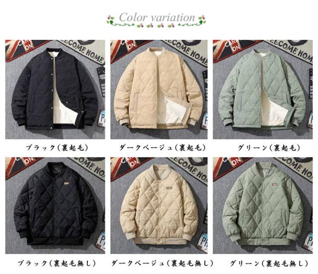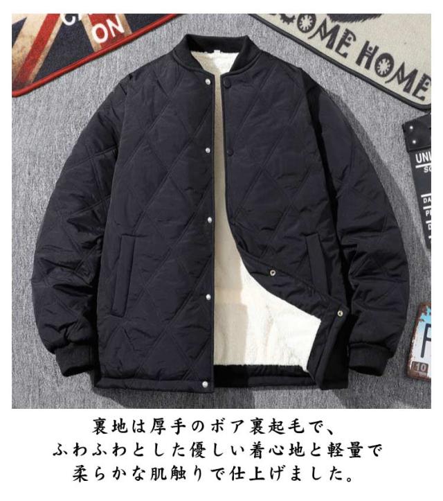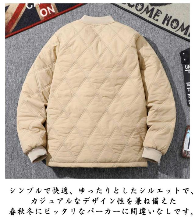 キルティングジャケット メンズ 中綿ジャケット あったか 裏起毛 裏ボア ブルゾン 防寒 中綿コート キルティングコート ノーカラージャケット 裏ボア ライトアウター ジャンパー 保温 体型カバー