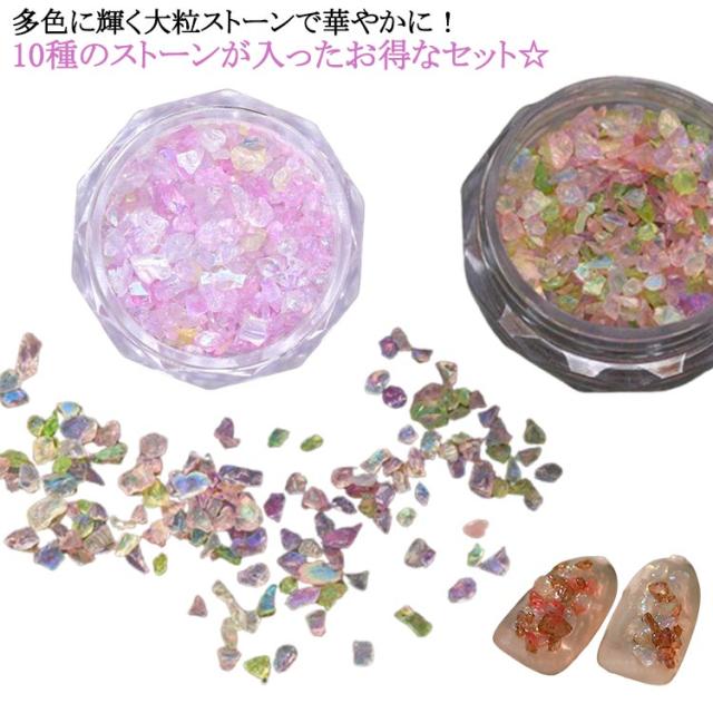 ミラーネイル 10種セット オーロラジュエリーストーン オーロラ 全10種組(収納ボックス付) ジェル/ネイル/ストーン/クリスタル/ビジュー/多面カット/しずく/雫