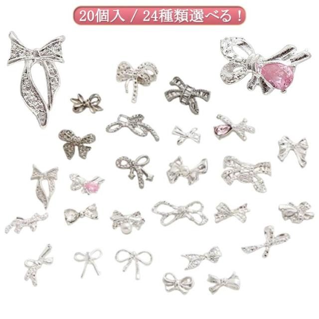 リボン パーツ ネイル リボン ストーン 24種類 ネイルパーツ ハンドメイド 韓国 レジン ネイル パーツ 20個入 ジェルネイル ネイルアート セルフネイル