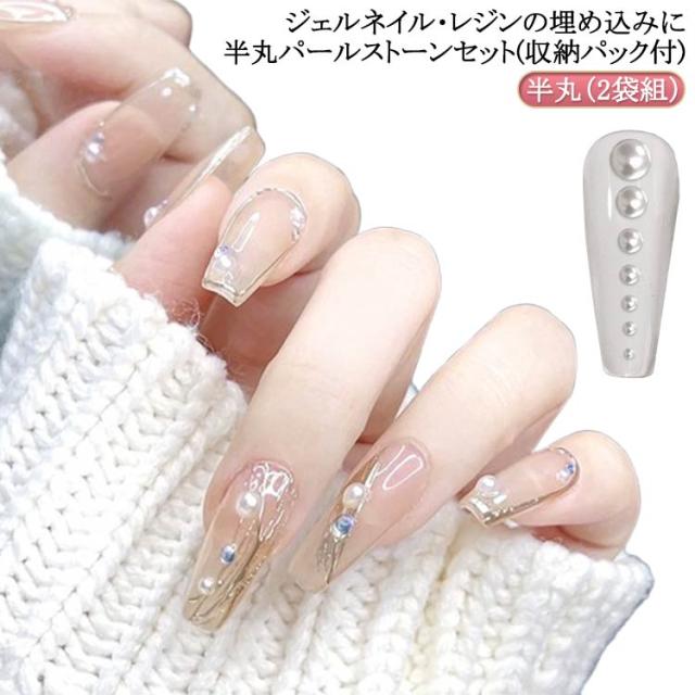 ストーン ネイルパーツ 半丸(2袋組) ネイル ストーンセット パーツ ジェルネイル ネイル用品 セット パール ジェルネイル・レジンの埋め込みに ラインストーン レジン ジェルネイル・レジンの埋め込みに セルフ ジェルネイル用品
