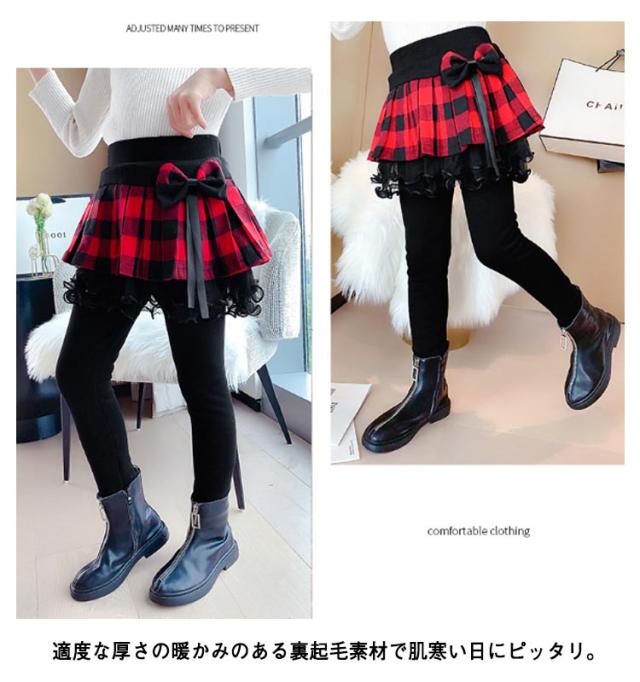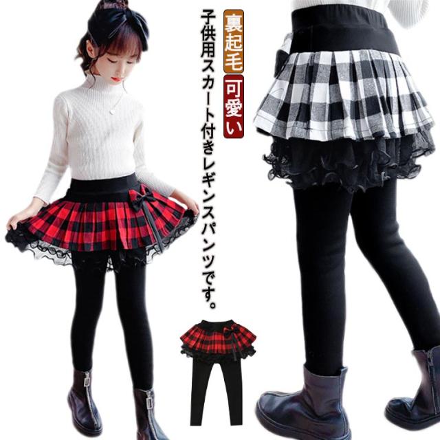 スカッツ リボン付き レギンス付きスカート キッズ ジュニア リボン付き スカート付きレギンス スカート付き レギンス パンツ 女の子 スカート付きスパッツ 裏起毛 暖かい 秋冬 可愛い 姫系 110 120 130 140 150