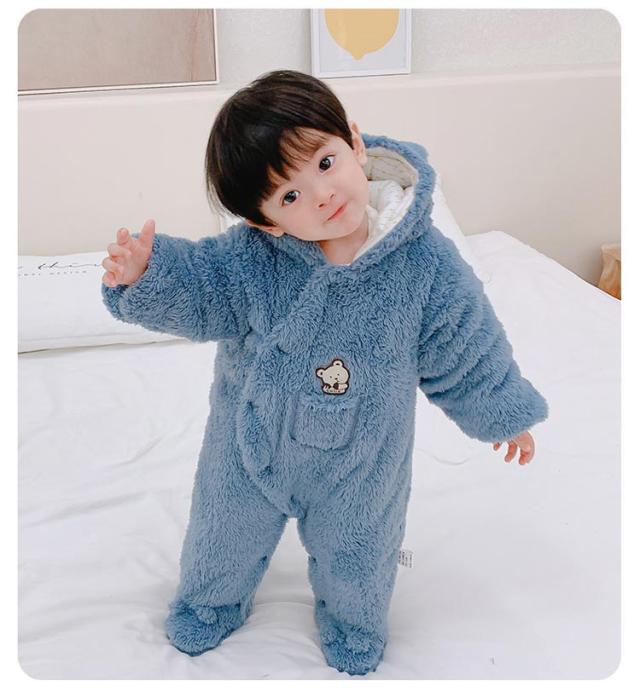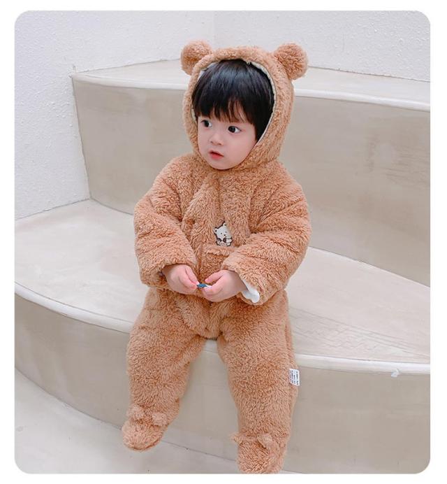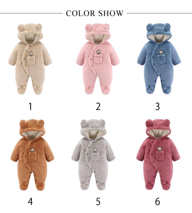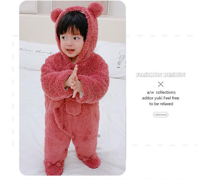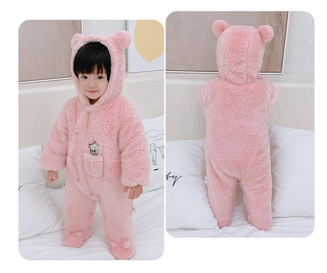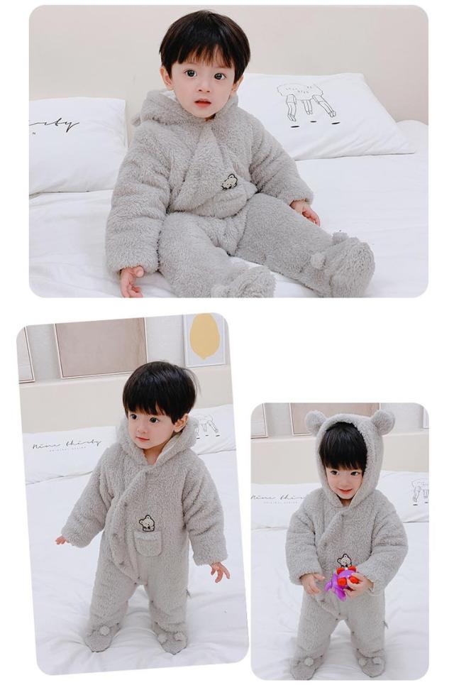 ベビー服 女の子 男の子 もこもこ ロンパース カバーオール 秋冬 赤ちゃん 前開き フリース あったか 新生児 フード付き 熊耳付き 防寒 着ぐるみ ルームウェア プレゼント ベビー服 出産祝い 可愛い