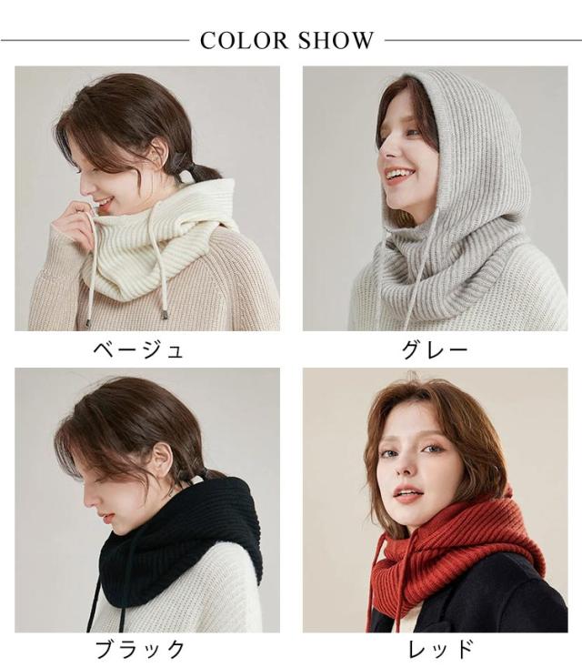 | 今季大人気トレンド感のあるファッションアイテムです。 ニット帽子とネックウォーマーを一体式にして、防寒効果はアップ! ふわふわしたニットで肌触りも柔らかく、ボリューム感のあるフードで小顔効果も抜群です。 ドロストデザインなので紐を絞って結べば大人可愛い雰囲気が作れます。 柔らかく折りたためてカバンに簡単に収納が可能、冬のお出掛けの際、持っておくと便利なセットです。 | |