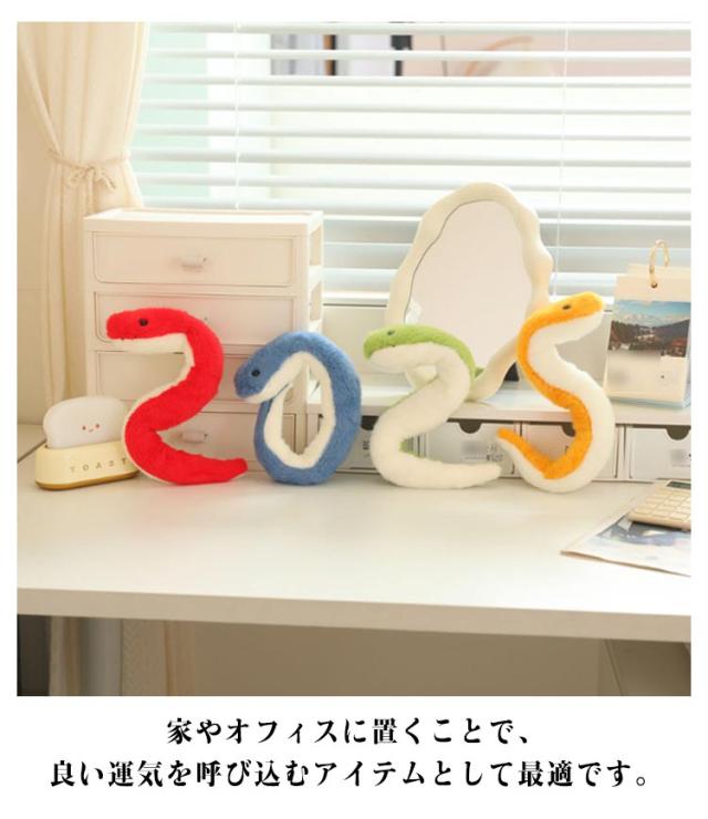 | へびぬいぐるみはモコモコで可愛いて、手触りもよく気持ちがいいへびです。 このヘビのぬいぐるみは、抱きしめたり絞ったりするのに最適な柔らかく短いぬいぐるみ生地が特徴で、 お子様に贅沢な快適さと快適な体験を与え、きっと気に入っていただけるでしょう。 巳年は「繁栄」や「守り」を象徴すると言われており、蛇のぬいぐるみは幸福や繁栄のお守りとしても最適です。 家やオフィスに置くことで、良い運気を呼び込むアイテムとして最適です。 | |