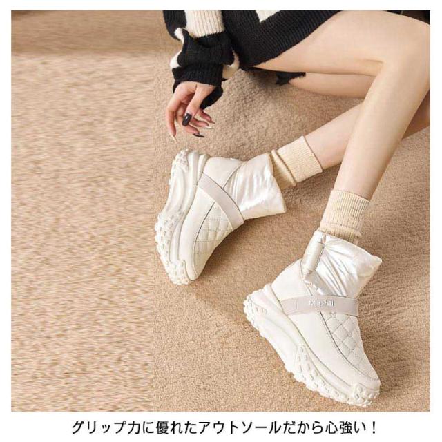 スノーブーツ レディース 厚底 キルト スノーブーツ 防水 ウインターブーツ スノーシューズ ボアブーツ ボアシューズ 5cmヒール 裏起毛 キルティング 中綿 雪靴 防滑 おしゃれ 滑りにくい キャンプ