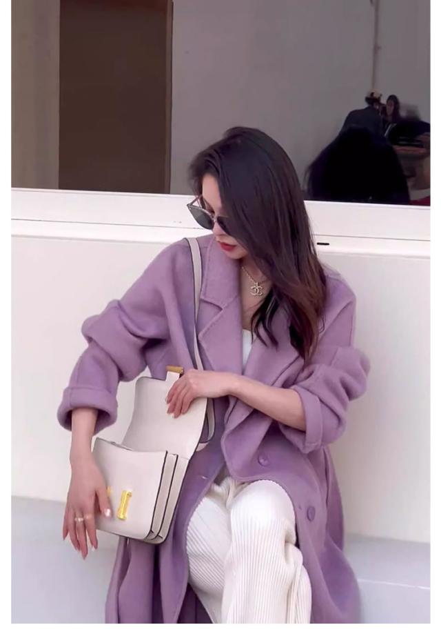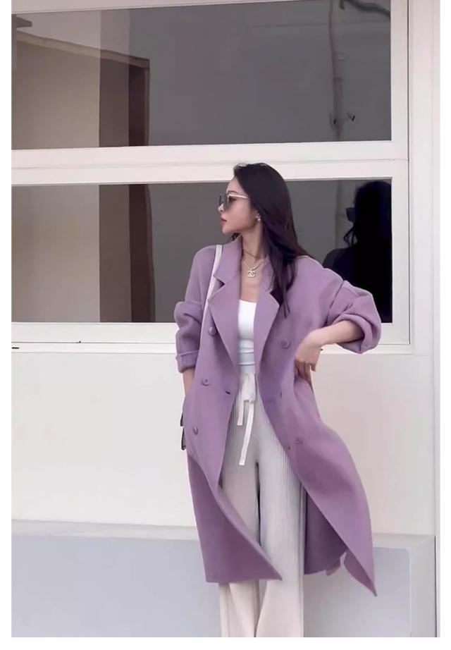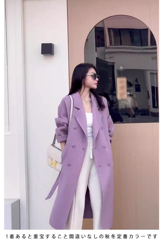 | 暗くなりがちな冬コーデをぱっと明るくするきれいなパープルカラーコート。 女性らしさをぐっと上げる、大人かわいい色合い、洗練されたデザインながら、可愛らしい印象。 定番のテーラードカラーで品よく見せ、カジュアルな中にも上品な大人っぽさを演出。 1着あると重宝すること間違いなしの秋冬定番カラーです。 | |
