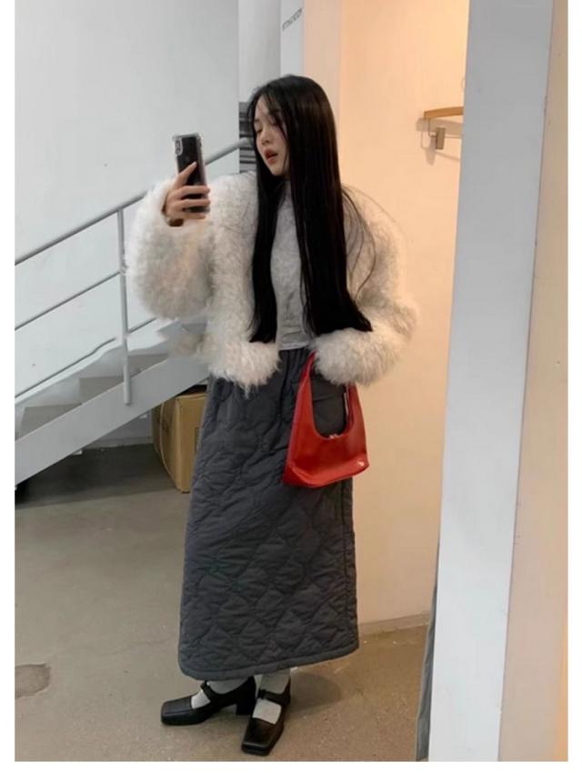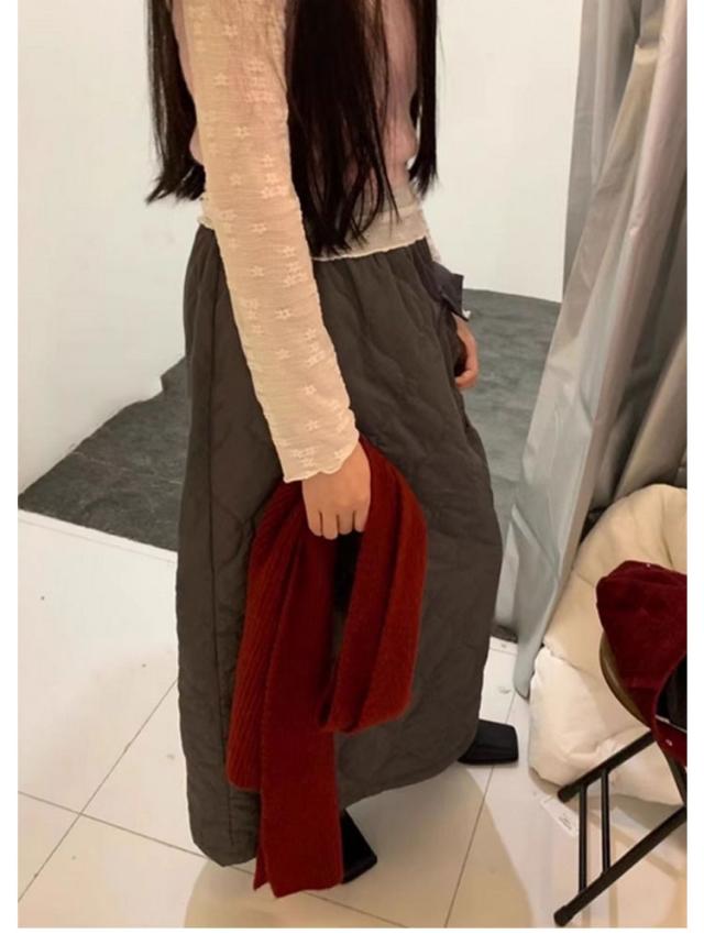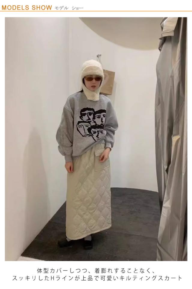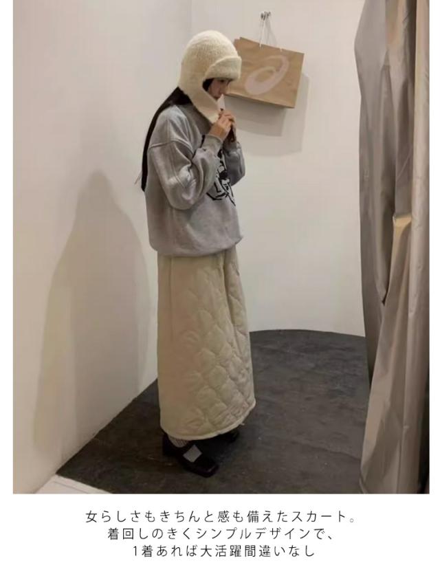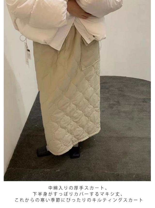 マキシスカート ウェストゴム 防寒スカート 冬服 冬スカート ポケット付き 可愛い 中綿入り スカート キルティング 秋冬 保温 蓄熱 ロング丈 冬スカート 体型カバー 脚長 通勤 オフィス 日常