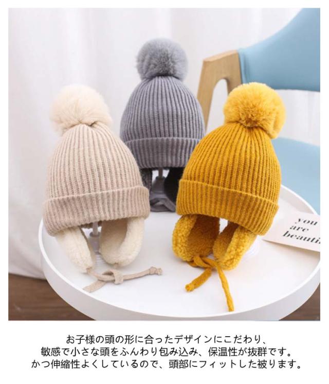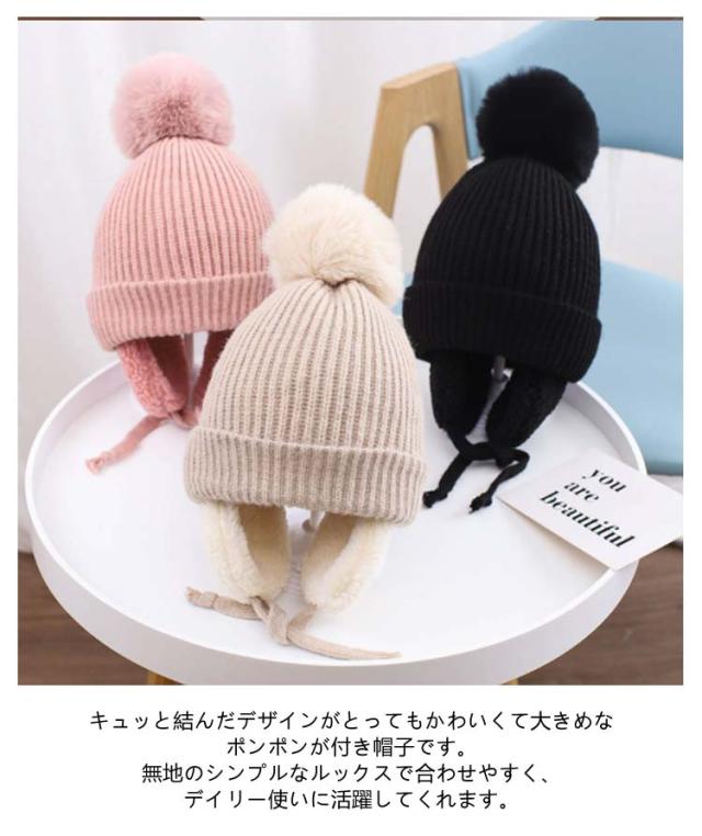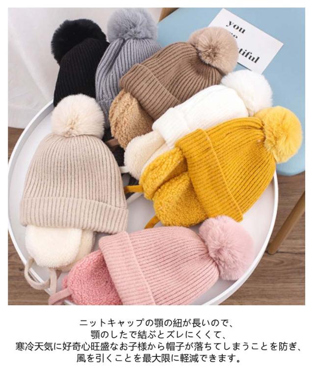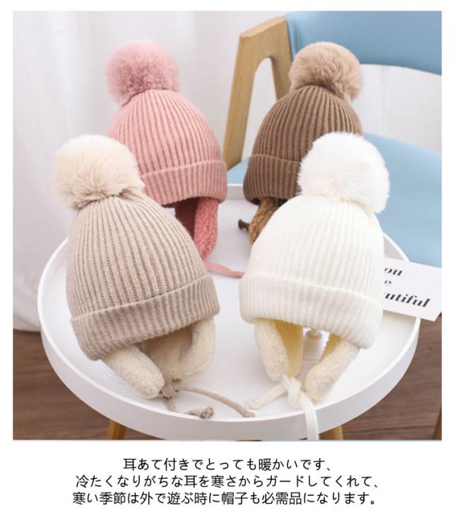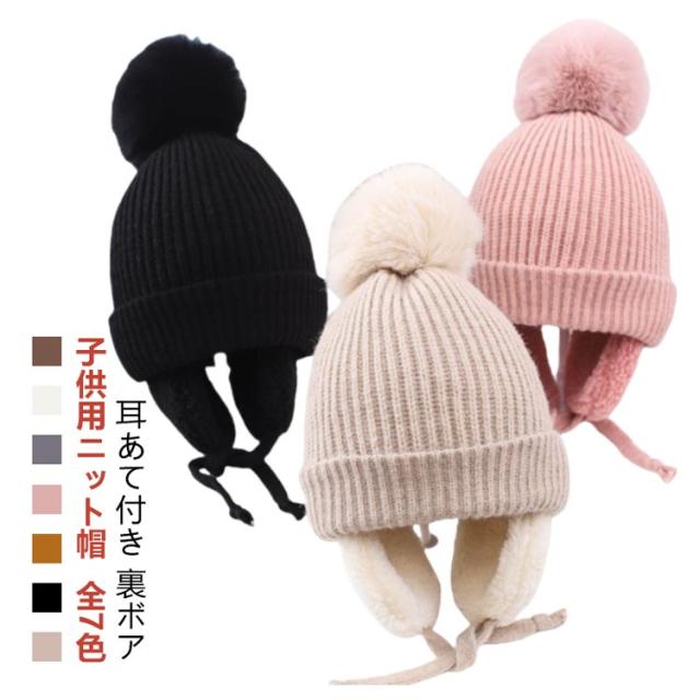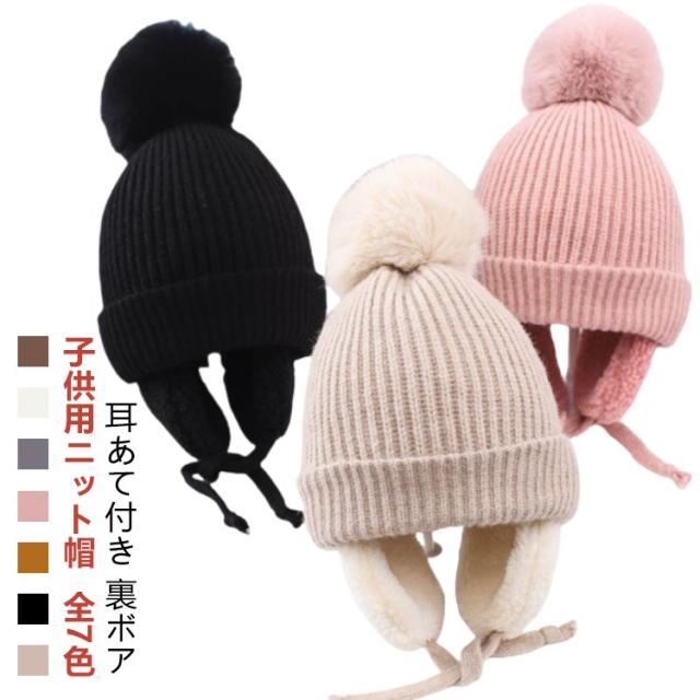 キッズ 帽子 耳あて付き キッズ帽子 子供 ハット 防寒 秋冬 暖かい ニット帽 保温 ニット帽子 ニット帽 男の子 女の子 冬用 赤ちゃん 耳保護 無地 柔らかい オシャレ かわいい ポンポン付き あったか ベビー 赤ちゃん 防風 子ども