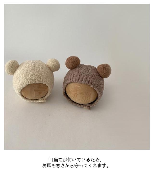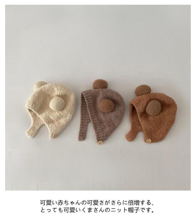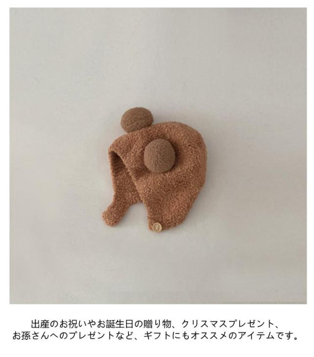 | 【ベビー帽子】【もこもこ】【全7色】【ポンポン・耳あて】 やさしい肌触りのボア生地を使用した、のニット帽です。 柔らかなソフトボア素材で、赤ちゃんの頭を優しく包みます。 可愛い赤ちゃんの可愛さがさらに倍増する、とっても可愛いくまさんのニット帽子です。 耳当てが付いているため、お耳も寒さから守ってくれます。 あご部分をボタンで固定できるので、顔まわり・首まわりをしっかり包んで、寒い空気をシャットアウト! 風で脱げてしまったり、お子さま自身で脱いでしまう心配も軽減されます。 出産のお祝いやお誕生日の贈り物、クリスマスプレゼント、お孫さんへのプレゼントなど、ギフトにもオススメのアイテムです。 | |