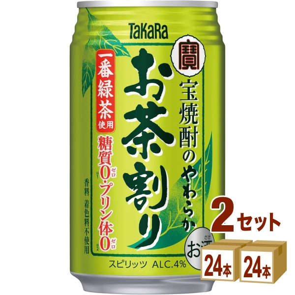 【商品詳細】すっきりした宝焼酎と深みのある一番緑茶を使用し、香料・着色料不使用で素材本来の味わいが楽しめ、糖質ゼロ・プリン体ゼロがうれしい本格緑茶割り。お食事に、またお風呂上がりに、お気軽にお楽しみください。