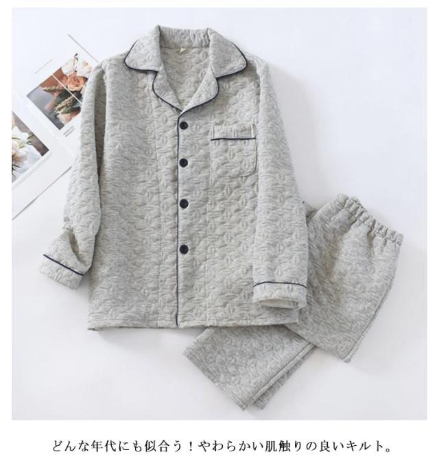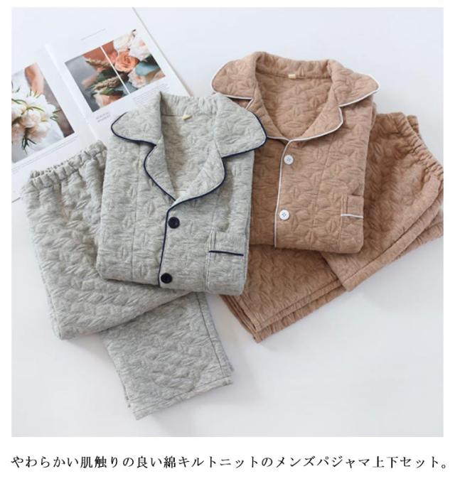 パジャマ メンズ 綿 キルト キルトニット 長袖 前開き 冬 上下セット 綿95% ルームウェア ニットキルト 肌に優しい 暖かい 冬用 無地 シンプル コットン 厚手 春 秋 男性 部屋着 大人 入院 紳士 旅行 敬老の日 父の日 敬老の日 おしゃれ ギフト 送料無料
