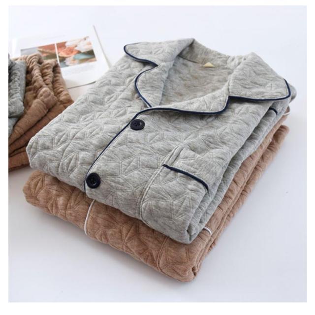 | メンズパジャマ 極厚綿 キルト やわらかい肌触りの良い綿キルトニットのメンズパジャマ上下セット。 どんな年代にも似合う!やわらかい肌触りの良いキルト。 衿付き、前ボタンで着やすく、入院時もおすすめです。 | |