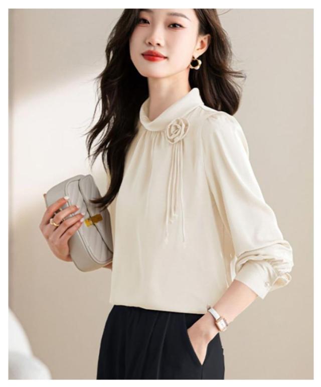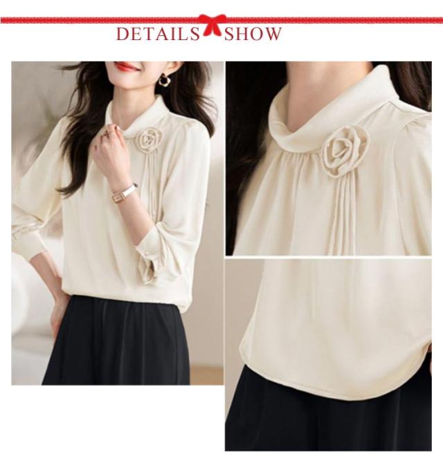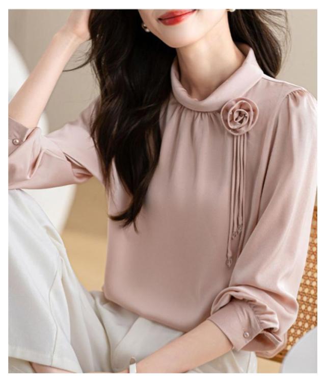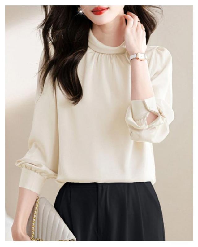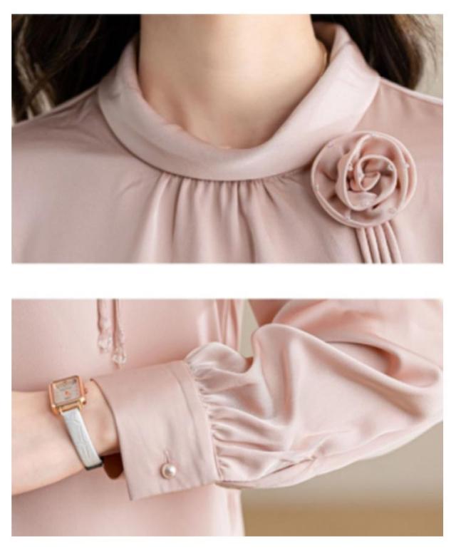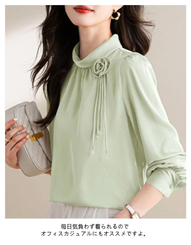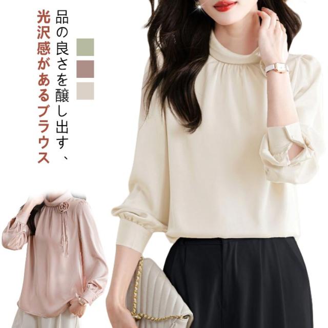 ブラウス レディース フリルネック フリル襟 シャツ オフィス スーツ インナー トップス ハイネック レース袖 フォーマル 華やか 光沢感 ギャザー カジュアル シフォン 春夏秋 通勤 仕事 おしゃれ ゆったり 大きいサイズ 20代30代40代50代 エレガント