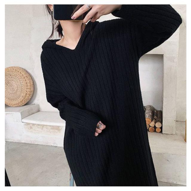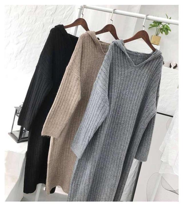 ニットワンピース ロング ロングワンピース ワンピース フード付き 膝下 長袖 厚手 無地 大人 秋 冬 レディース 30代 40代 50代 防寒 セーター あったかい マキシ セーター 秋冬 冬 暖かい 体型カバー マタニティ シンプル 着痩せ カジュアル お洒落 送料無料