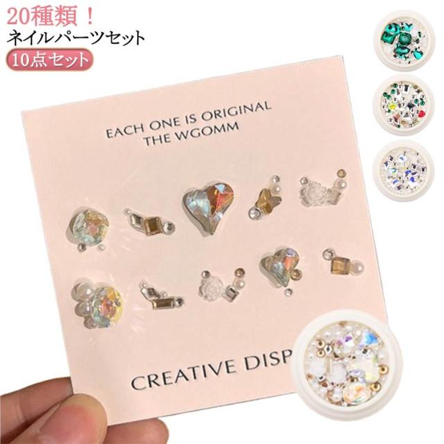 ネイルパーツ セット ネイル パーツ セット 10点セット ラインストーン ハート チェーン リボン バラ 花 ばら ラインストーンセット 大粒 ネイル パーツ ストーン デコレーション ネイルパーツ ラインストーン ビジュー セルフネイル ジェルネイル 送料無料
