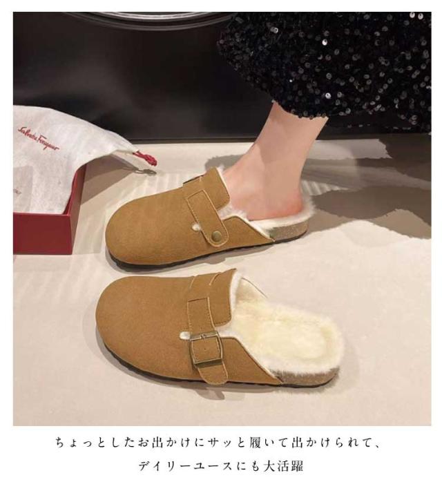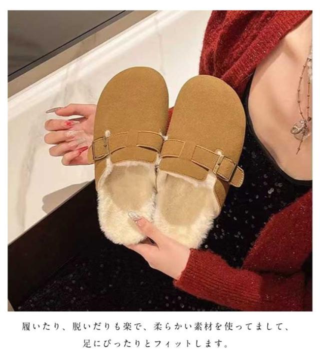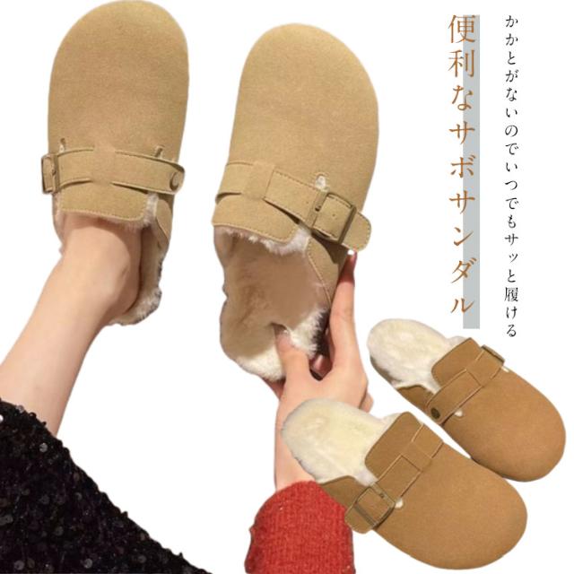 防寒 仕事履き ボア付き ファー あったか サンダル 裏ボア 靴 サボ 冬用 サボサンダル 裏起毛 スウェード レディース ぺたんこ オフィス シューズ カジュアル オフィス シンプル かかとなし サボサンダル スリッポン クロッグ スリッパ 楽ちん