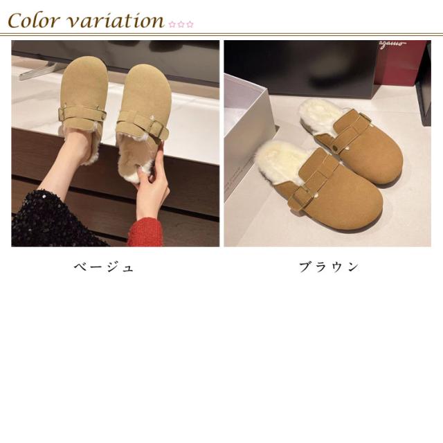 | かかとがないのでいつでもサッと履ける便利なサボサンダル。 スエードのアッパーは外からの冷気を防ぎ、裏地はボア素材でふんわり柔らかい生地が足元を暖かく包み込んで保温性が高くて暖かい! どんなスタイルにも合わせやすくカジュアルはもちろん、オフィスでも使いやすいデザインです。 履いたり、脱いだりも楽で、柔らかい素材を使ってまして、足にぴったりとフィットします。 ちょっとしたお出かけにサッと履いて出かけられて、デイリーユースにも大活躍 | |