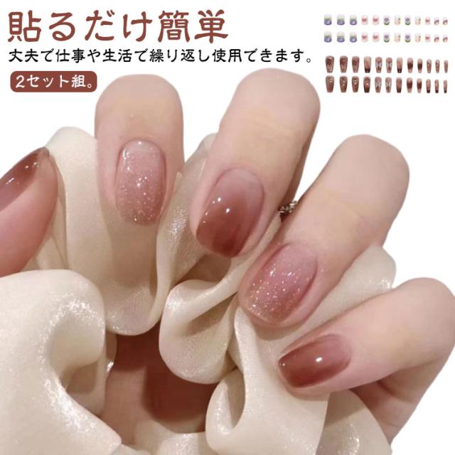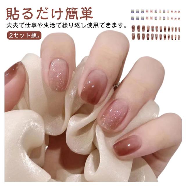 2セット 24枚セット ネイルチップ ショート ロング ネイル ネイル ジェルネイル セルフネイル ネイルアート つけ爪 付け爪 貼るネイル ネイルステッカー ネイルチップ キラキラ カラーネイル カラーグラデーション 貼るだけ簡単 韓国 手作り 成人式 デート パーティー