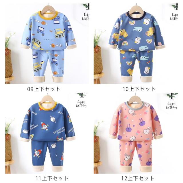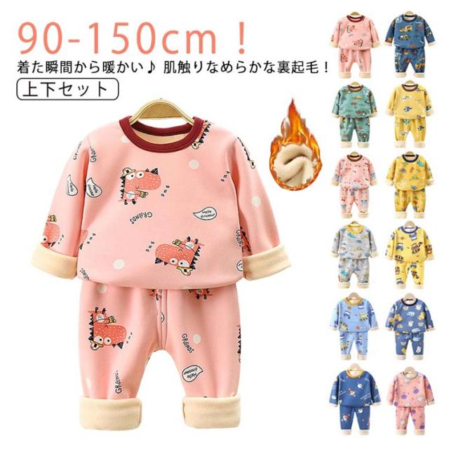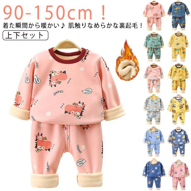 送料無料 キッズパジャマ ベビーパジャマ 裏起毛 パジャマ キッズ ベビー あったか 暖かい 秋 冬 防寒 起毛 裏ボア 動物柄 アニマル 部屋着 女の子 男の子 ルームウエア 肌着 長袖インナー 長ズボン 上下セット 寝巻き 保育園 おしゃれ 防寒 90 100 110 120 130 140 150cm