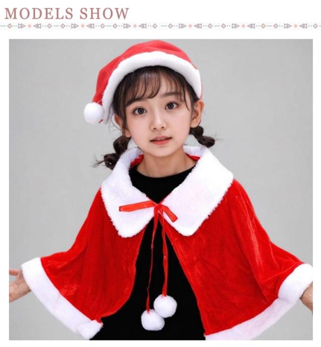 サンタマント キッズ ケープ サンタ 衣装 ポンチョ コスチューム クリスマス ボレロ 帽子付き 女の子 男の子 クリスマス衣装 子供 クリスマス 羽織り サンタクロース コスプレ 仮装 もこもこ レッド 赤 可愛い 送料無料
