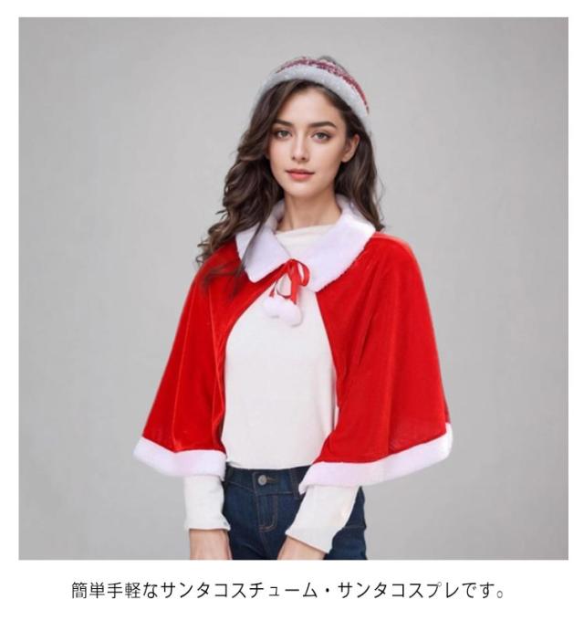 | 【マント+帽子】 クリスマスパーティー、イベントを盛り上げるサンタケープです。 簡単手軽なサンタコスチューム・サンタコスプレです。 | |