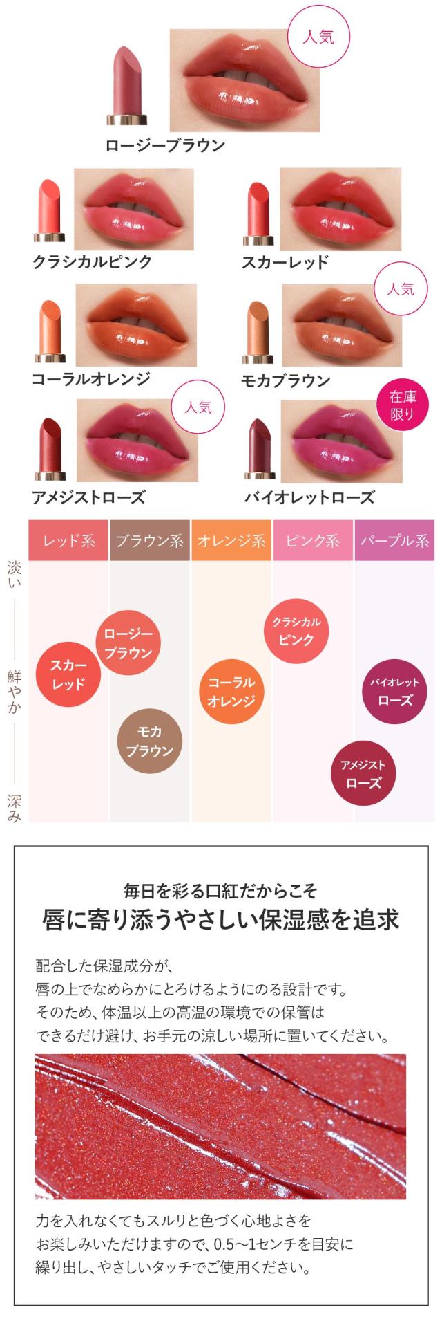口紅 リップ 保湿 落ちにくい 密着 抜け感 潤う 無添加 ルージュ 発色 ツヤ 全7色 ピンク オレンジ ブラウン レッド ローズ 透明感 乾燥 おすすめ 公式 ポイント消化 送料無料