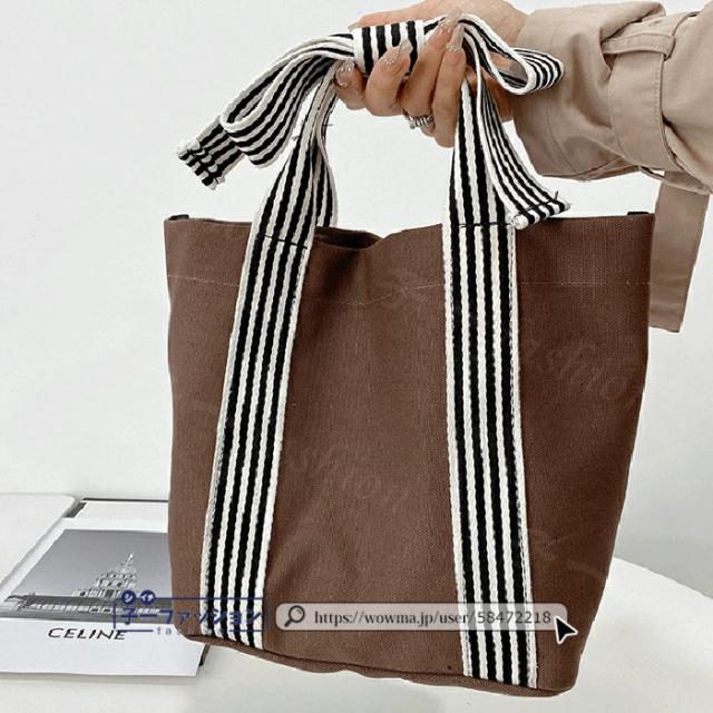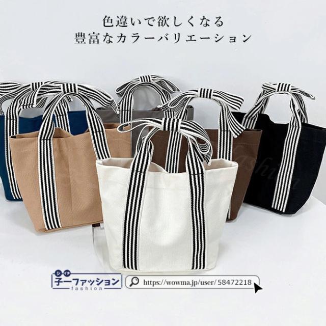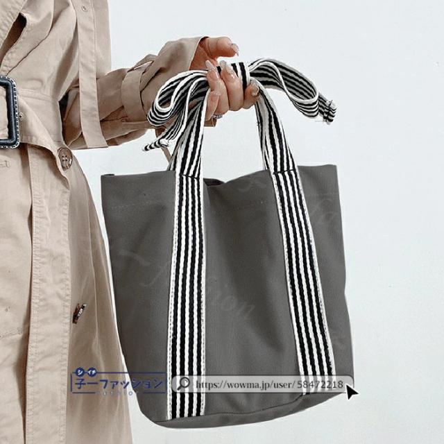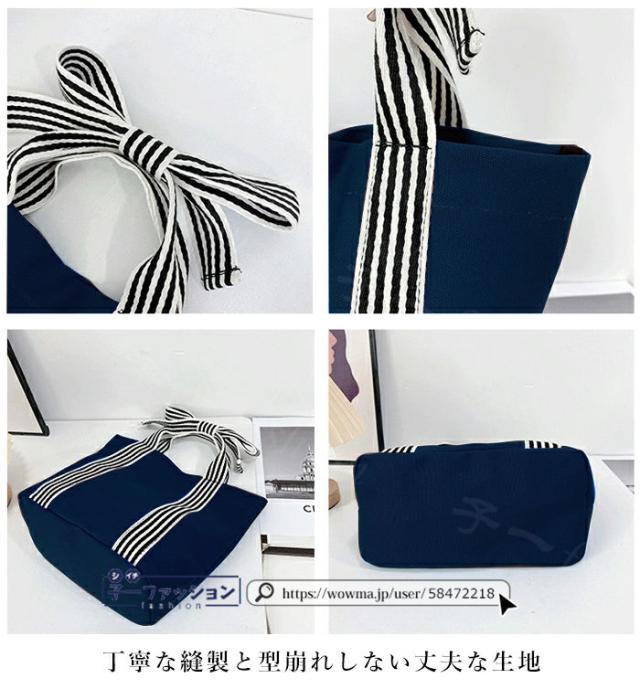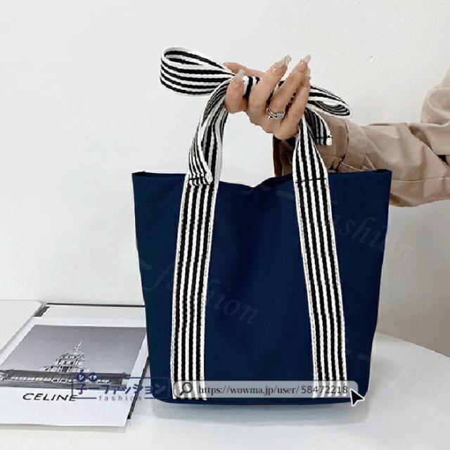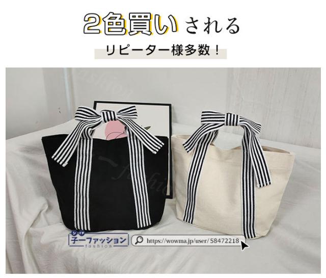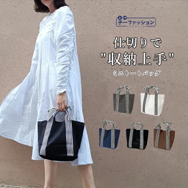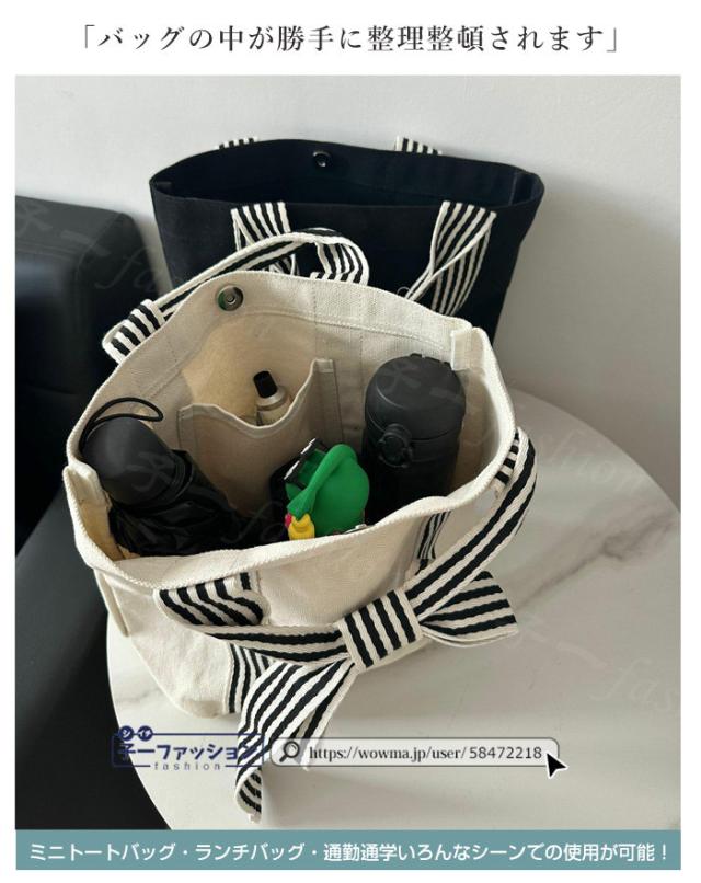 <1点2,350円!クーポン利用で>トートバッグ レディース リボン ストライプ ミニ 小さめ 帆布 ミニトート ハンドバッグ ランチバッグ バッグ サブバッグ エコバッグ 軽量 通勤 通学 シンプル モノトーン 可愛い 母の日 プレゼント ギフト 送料無料 秋冬