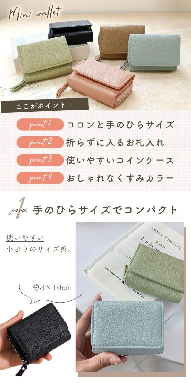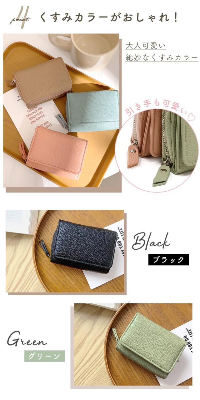 財布/レディース/3つ折り/合皮/PUレザー/シンプル/かわいい/おしゃれ/折りたたみ/大容量/ミニ/コンパクト/女性用/ポケット/カード入れ/小銭入れ/小さい/ファスナー/お札入れ/suica/pasmo/電子マネー/カードケース/収納/スリム/薄い/手のひらサイズ/コインケース/お札が折れない/実用的/ウォレット/三つ折り/レディース財布/ミニマル財布/薄型財布/ギフト/プレゼント/母の日/TN-TFWT/シボ革