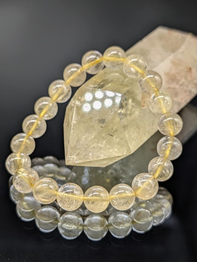 パワーストーン ルチルクォーツ 9〜10mm 金針水晶 上質 AAA ブレスレット 金運 財運 願望実現 天然石 メンズ レディース