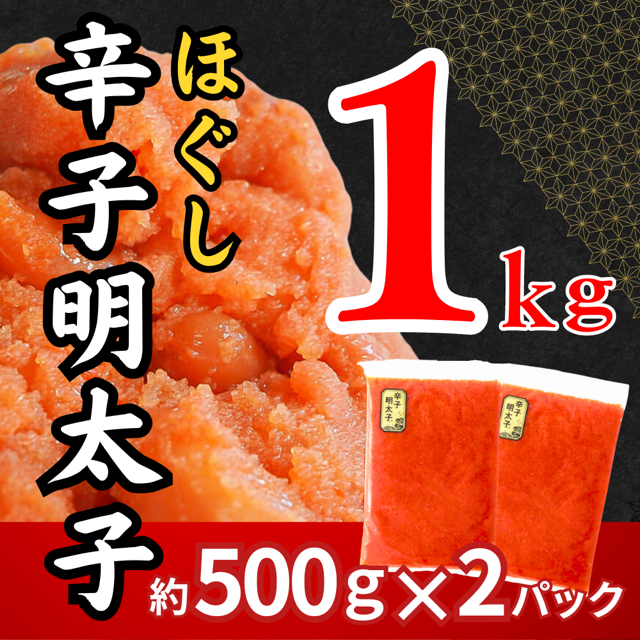 辛子明太子 約1kg (2パック) 1パック約500g入り ほぐし 冷凍 めんたいこ 明太子 バラコ ばらこ 皮なし たらこ 魚卵 海鮮 一級品 粒 真空包装 冷凍 福岡県 送料無料
