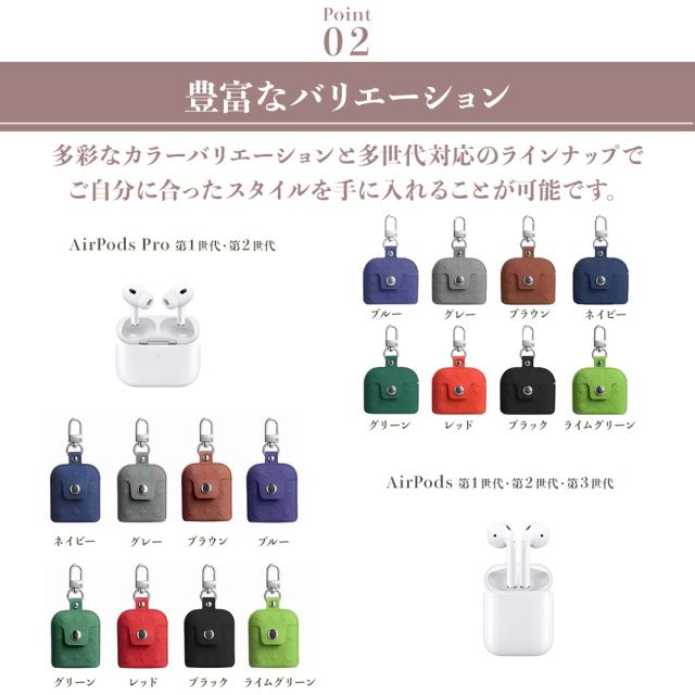AirPods用の保護ケースです。落下防止フック付きで持ち運びの際にも安心。