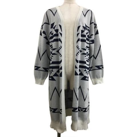 【中古】アーバンリサーチ サニーレーベル カーディガン ニット ガウン 前開き スリット 総柄 長袖 Free 紺 グレー