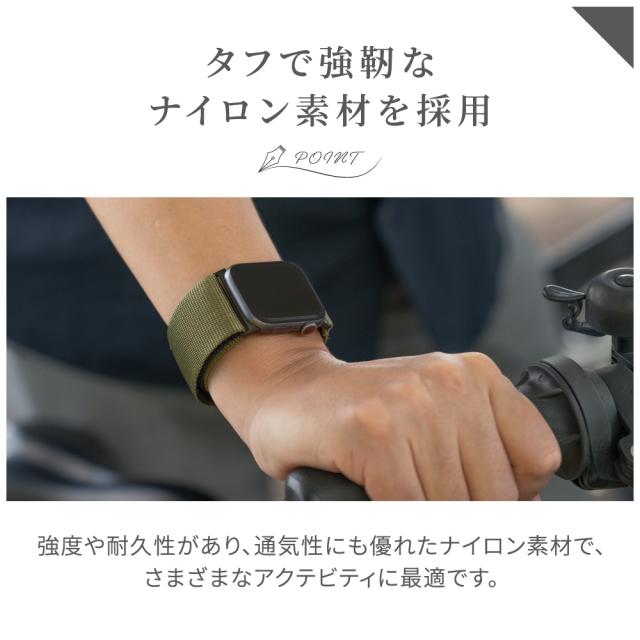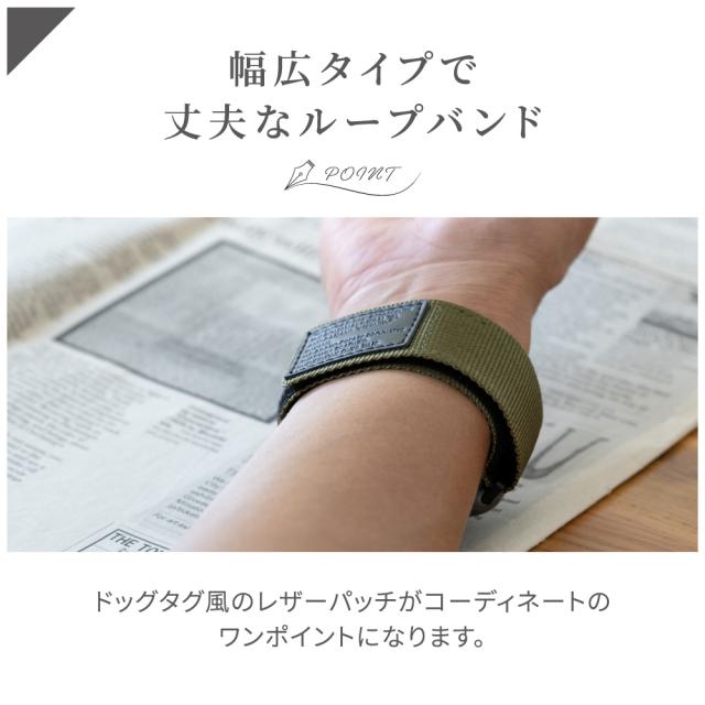 Apple Watch タフワイドループ バンド バックル ナイロン 面ファスナー アウトドア 時計 ブラック グレー カーキグリーン ネイビー owltech オウルテック おうるてっく