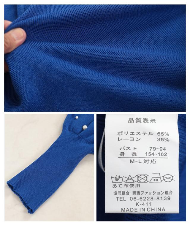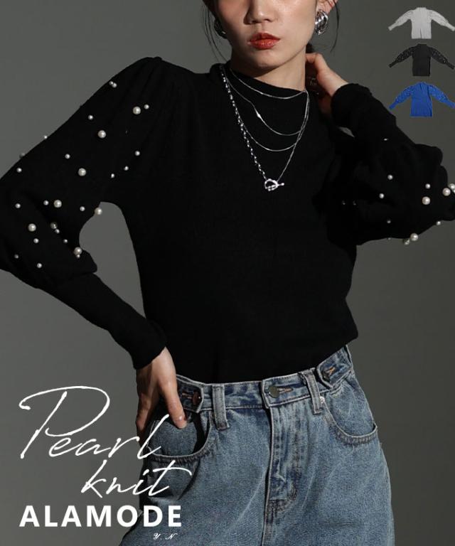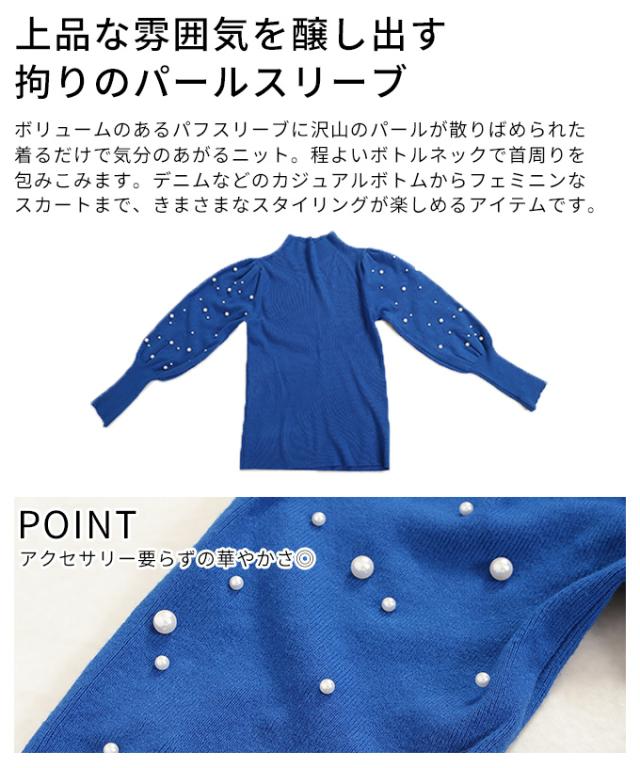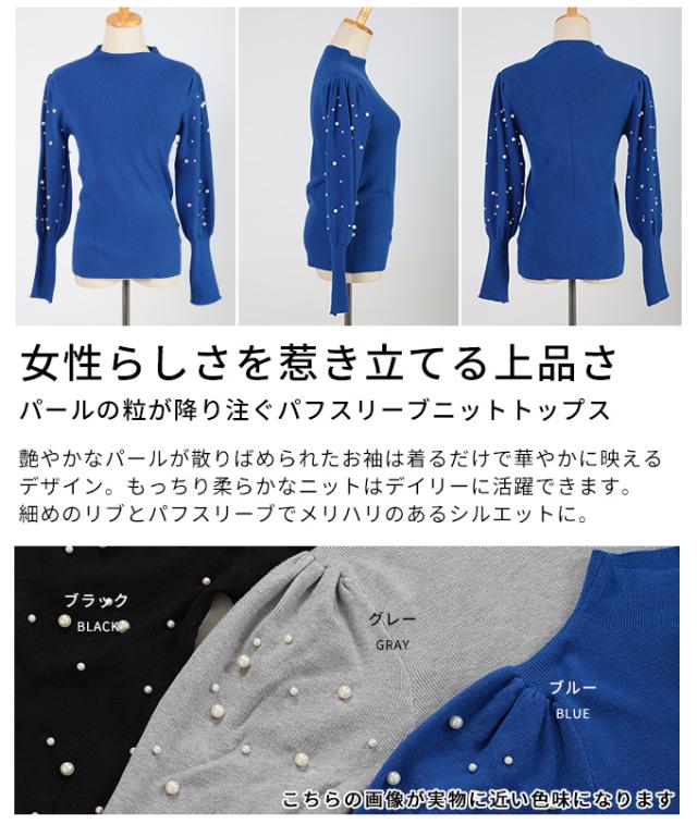 秋新作 パールの粒が降り注ぐパフスリーブニットトップス レディース ファッション トップス ニット セーター 黒 ブラック 青 大人可愛い 40代 レディースファッション 50代女性 ファッション 60代 ミセスファッション サワアラモード sawaalamode otona almam-81214