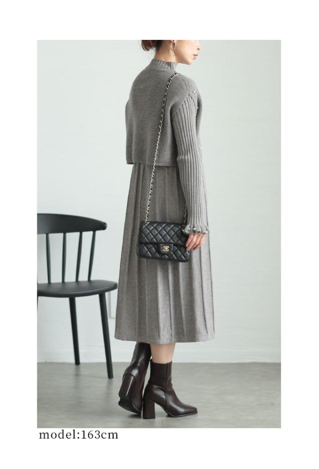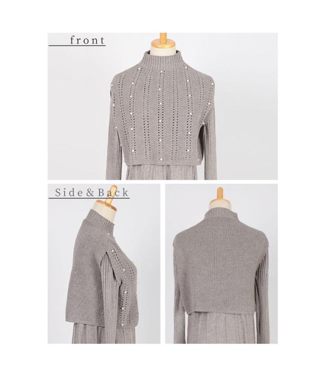 商品名: パールベストとワンピースのニットアンサンブル