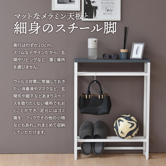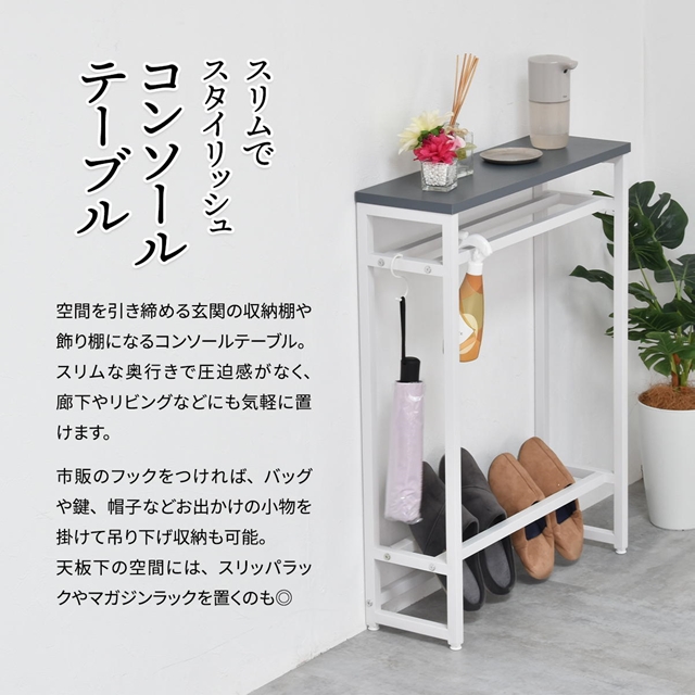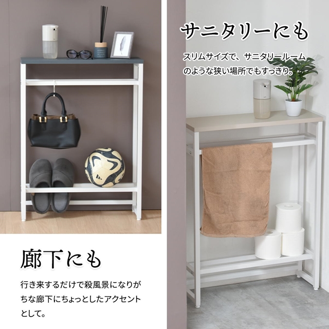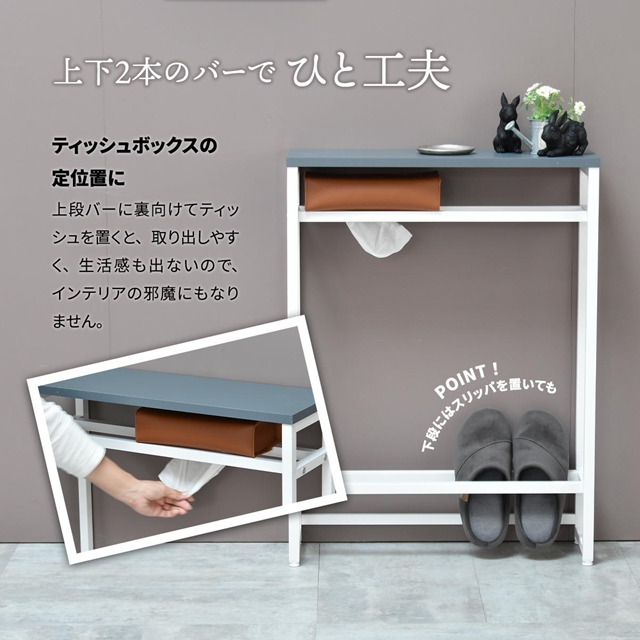 ありそうでなかった高さと薄さ コンソールテーブル 【送料無料】 カウンターテーブル ハイタイプ おしゃれ インテリア 玄関 ハイテーブル カウンターテーブル スリム 北欧 くすみカラー 棚付き ホワイト 白 アイアン スチール