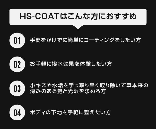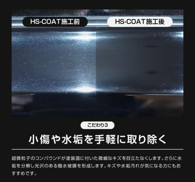 超撥水キズ消しコーティング剤 HS-COAT 100ml 塗装面の微細なキズを効果的に消す 撥水効果も抜群な施工しやすいコーティング剤