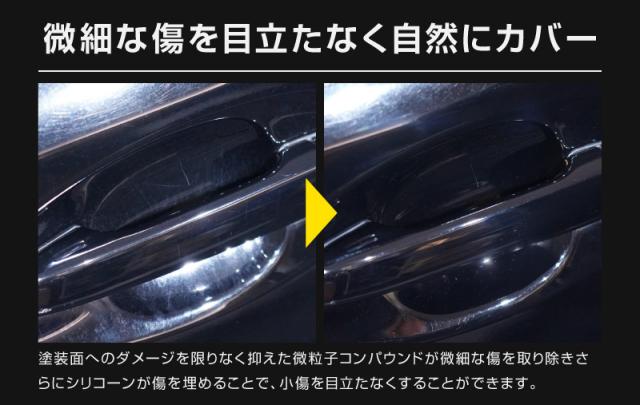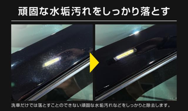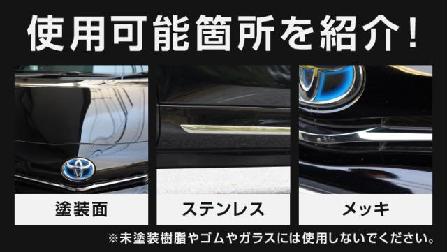 どの色の車にも対応し、深い艶と光沢を与え、小キズを埋めつつ水垢も分解除去。