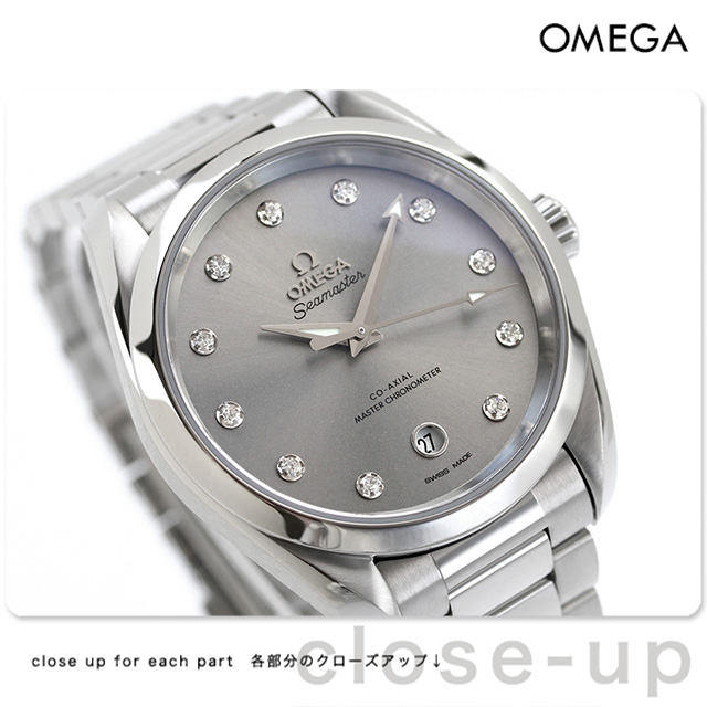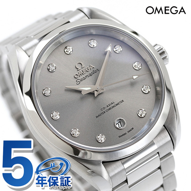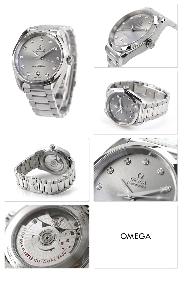 5年保証キャンペーン オメガ シーマスター アクアテラ 150M 38mm ダイヤモンド スイス製 レディース 腕時計 220.10.38.20.56.001 OMEGA Seamaster Aqua Terra 150M アナログ グレー ◆オメガは1848年、ルイ・ブランがスイスに時計工房を創設したことから始まります。1894年に発表した懐中時計のムーブメント、「Ω(オメガ/達成と極致の意)」という言葉を正式な社名として採用しました。 スピードマスターは、アポロ11号で月面に降り立った宇宙飛行士の腕に装備されていたことから、“月面で着用された最初の時計”として知られています。 「シーマスター アクアテラ」レディースモデルは、エレガンスを体現するタイムピースです。シマーベルベットグレーのダイアルに、6時位置に日付表示があしらわれ、ロジウムプレートのホルダーに11個のダイヤモンドをセットしたインデックスが配されています。 機械式腕時計