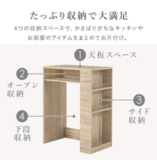 ゴミ箱上ラック 幅71cm 2分別タイプ ごみ箱上を有効活用 サイド収納付き 省スペース キッチンラック 作業台 作業スペース ごみ箱上ラック ゴミ箱上収納 ゴミ箱ラック ごみ箱ラック キッチン