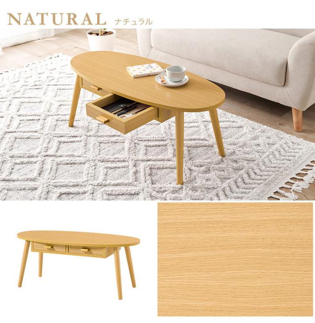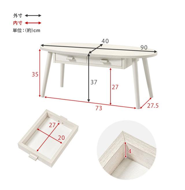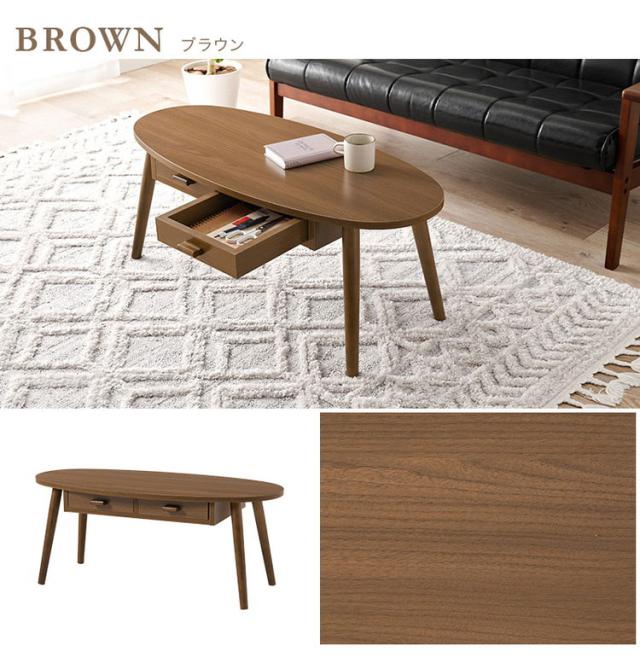 センターテーブル 引き出し付き 収納付き 90×40cm 楕円 オーバル ローテーブル 机 ソファテーブル コーヒーテーブル 北欧 シンプル モダン おしゃれ(代引不可)【送料無料】